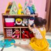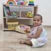 The journey begins here with curious little hands reaching for their favorite toy in the storage box. Every movement, every giggle, every reach is a step toward independence.