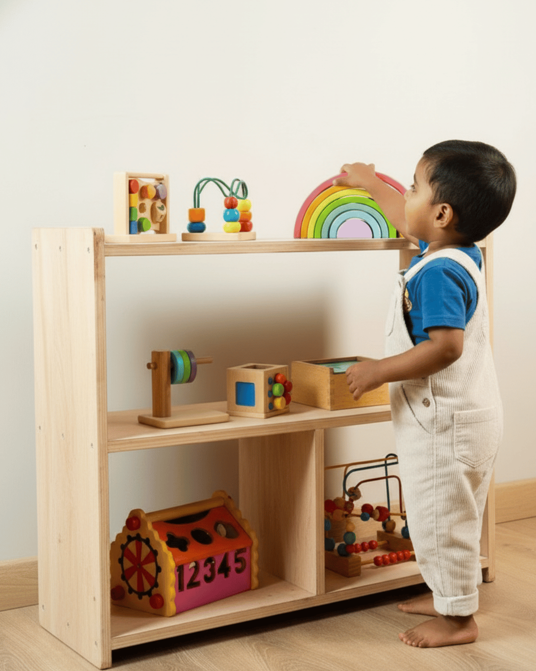 That first pull to stand, a moment of pride for both parent and child. With our toy shelf by their side, your little one learns confidence, balance, and joy in every wobbly stand.